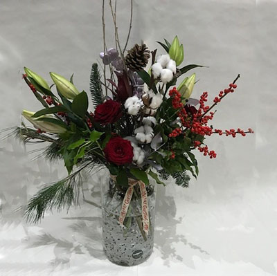 Festive glass vase arrangement
